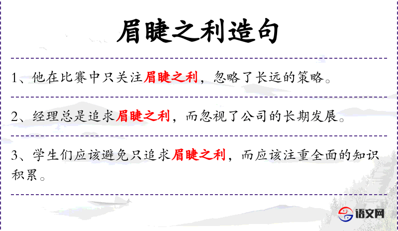 9. 【眉睫之利】 眼前微小的利益。