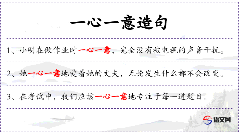 - 一心一意:专心致志、全神贯注