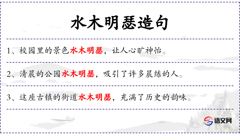 3. 【水木明瑟】 瑟:洁净鲜明的样子。形容风景清爽洁净。