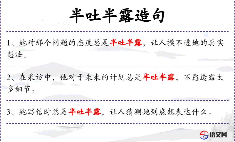 - 在实际交流中,“半吐半露”可能被视为一种策略,用于避免直接冲突或保留回旋余地。