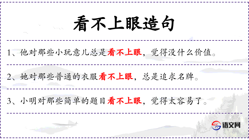 1. 【看不上眼】 - 看不过眼,不合己意。