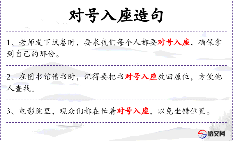 4. 【对号入座】 比喻有些人沉不住气,对于未点名的批评自己跳出来认账或把人或物放到应该放的位置上去。