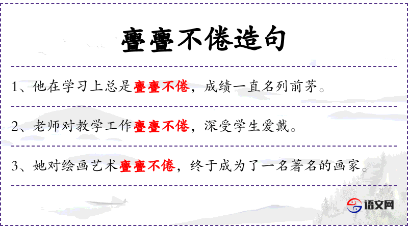 - 亹亹不倦:成语,形容勤奋不懈。