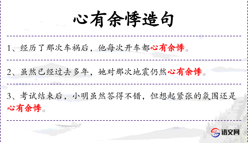 - 心有余悸:成语,表示内心仍然感到害怕或不安。