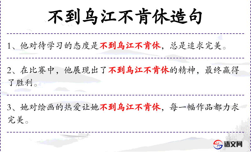 “不到乌江不肯休”是一个成语,源自历史故事,强调了坚持和毅力的重要性。这个成语在文化中常被用来形容一个人不达目的决不罢休的精神。