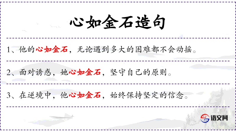 - 心如金石:比喻内心坚定,不易受外界影响。