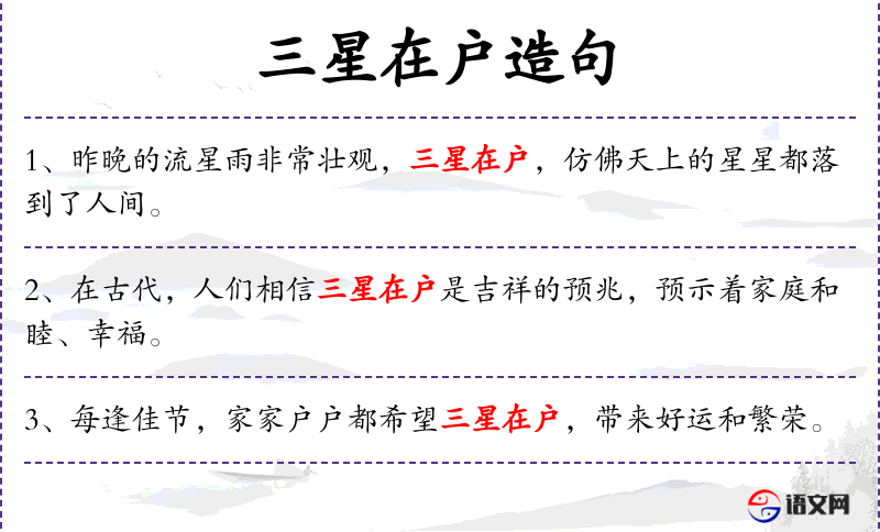 1. 【三星在户】 - 表示新婚之喜。