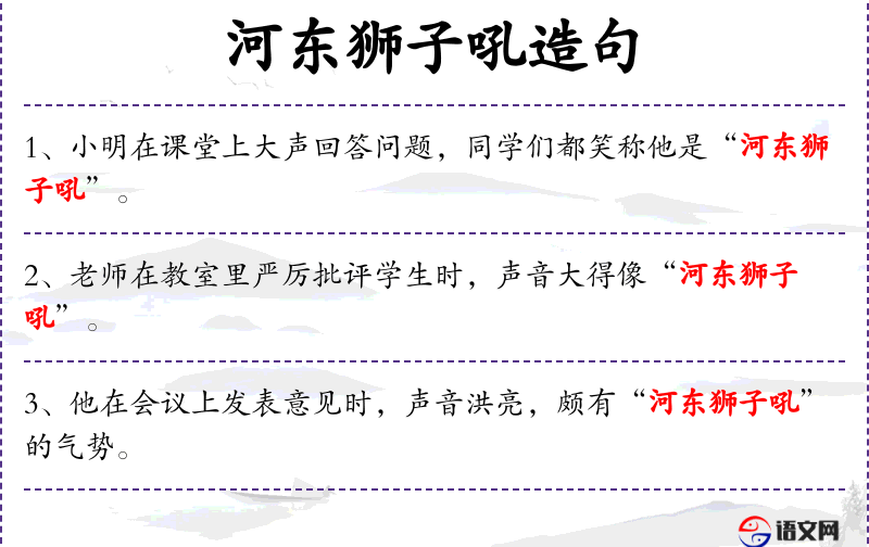 4. 【河东狮子吼】 - 比喻妒悍的妻子发怒,并借以嘲笑惧内的人。