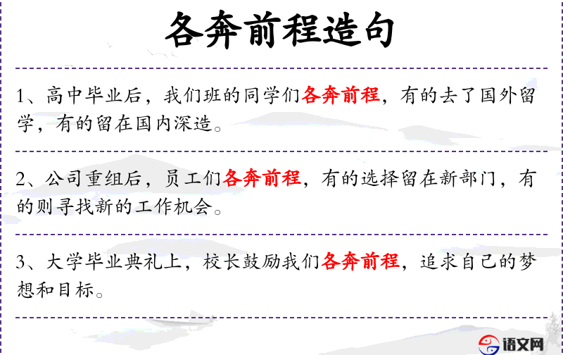 - 各奔前程:表示各自追求自己的未来道路。