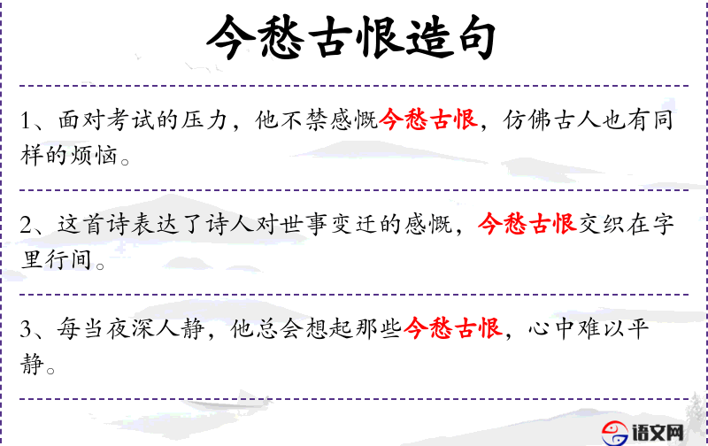 句子:“面对考试的压力,他不禁感慨今愁古恨,仿佛古人也有同样的烦恼。”
