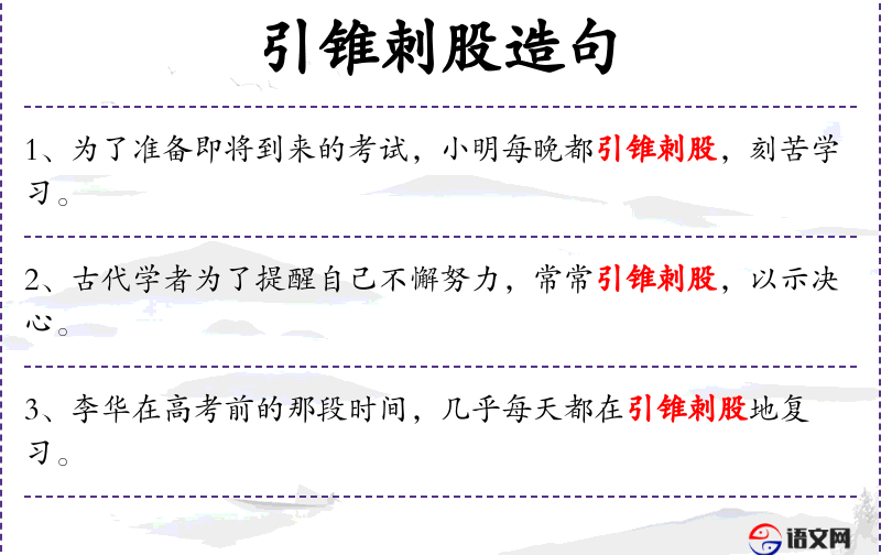 - 引锥刺股:这是一个成语,形容学*刻苦,不怕困难。