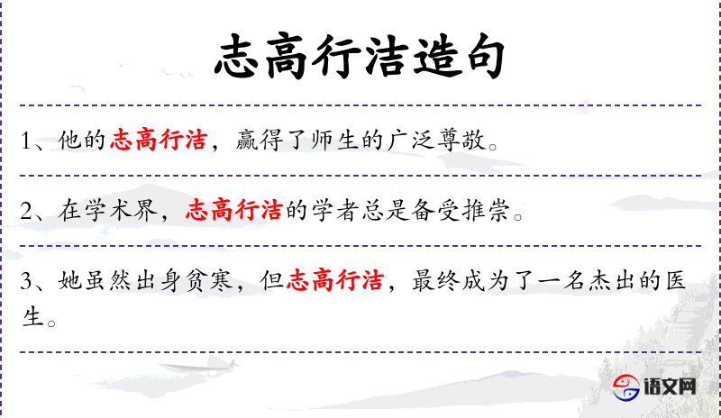 - 志高行洁:形容词,意为有远大志向且行为端正。