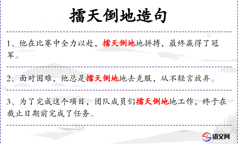 擂天倒地这个成语体现了中文中对努力工作的形象描述,强调了团队成员的拼搏精神。这种表达在**文化中常见,用于赞扬那些为了目标不懈努力的人。
