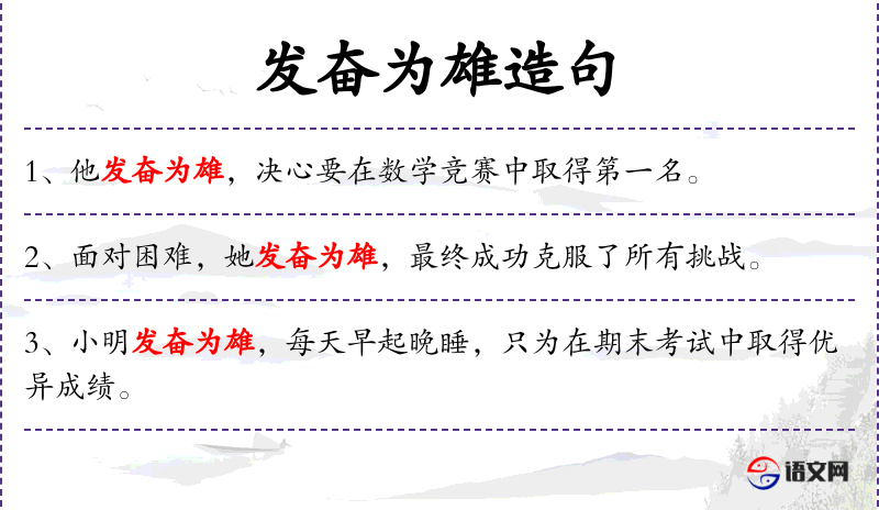 - 发奋为雄:表示努力奋斗,争取成为优秀的人。