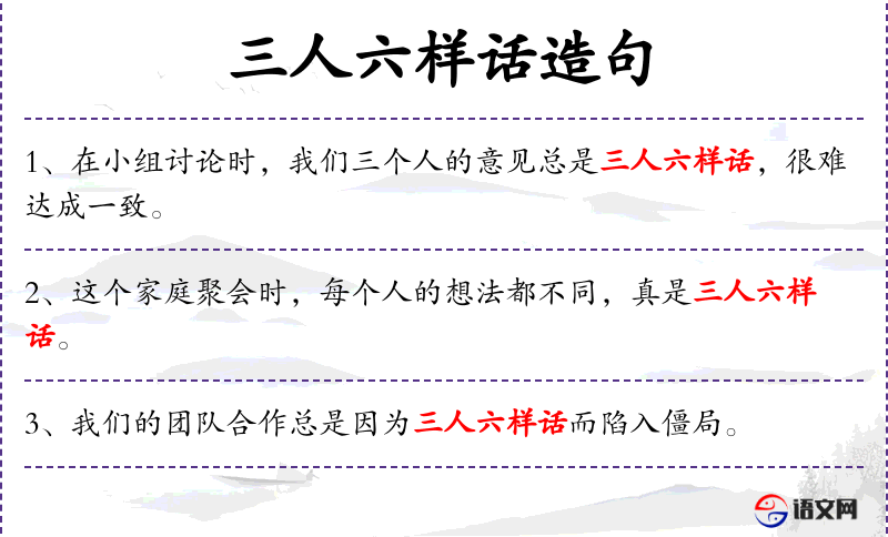 - “三人六样话”是一个成语,源自民间俗语,反映了人对多样性和差异性的认识。