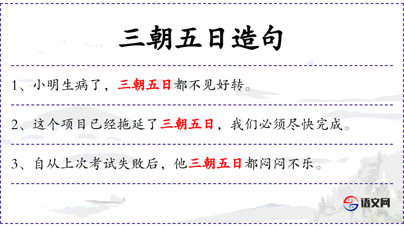 1. 【三朝五日】 - 指三、五天。