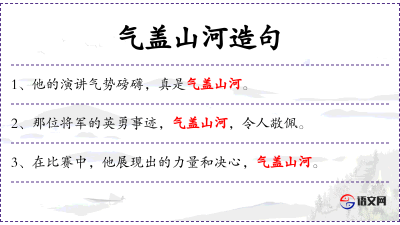 1. 【气盖山河】 - 形容气势很盛,可以覆盖山河。