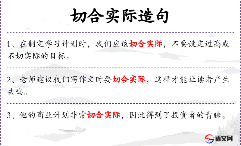 1. 【切合实际】 指想法或做事合乎实际情况。