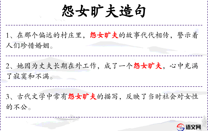 - 怨女旷夫:指在古代文学中,女性因丈夫不在或去世而感到孤独和不满的描写。