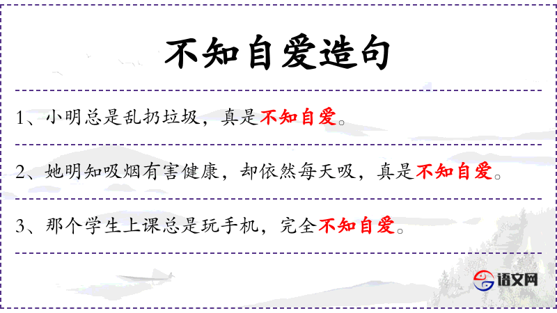 - 补语:不知自爱