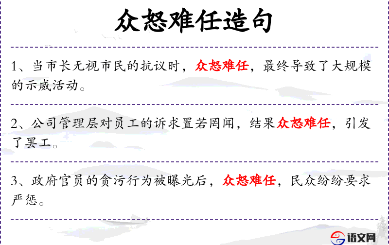 宾语:“众怒难任”