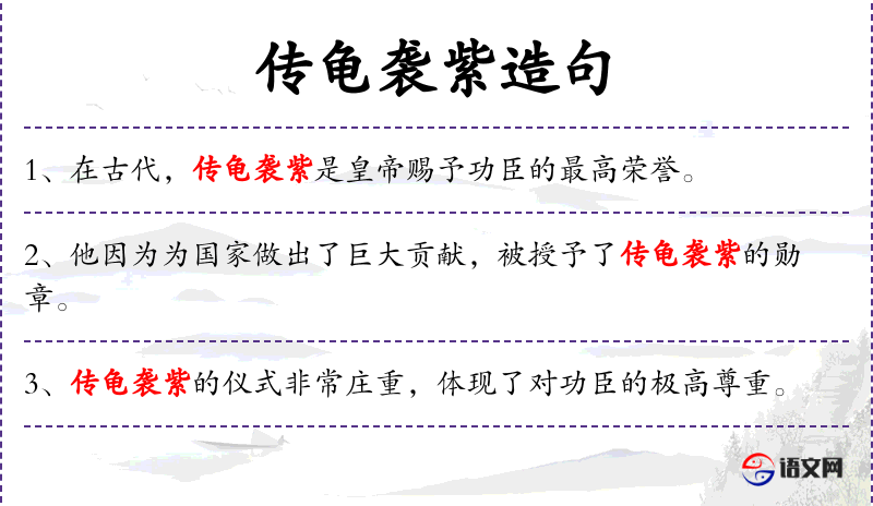 - 宾语:传龟袭紫的荣誉