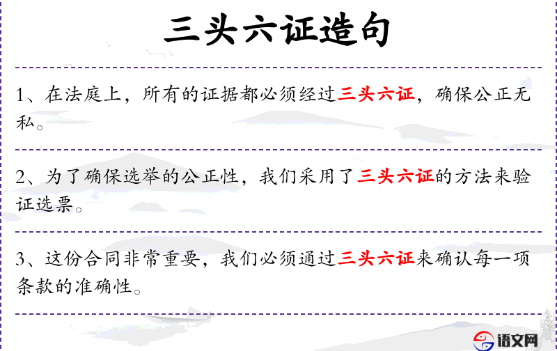 - 三头六证:成语,原意是指三个头和六个证据,这里可能指非常严格的检查措施。
