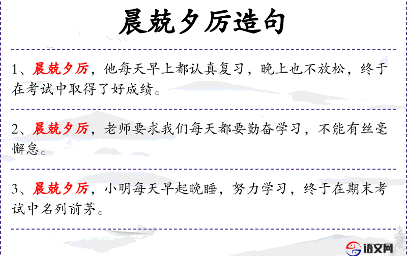 2. 【晨兢夕厉】 - 兢,小心谨慎;厉,严格。指终日勤勉谨慎。