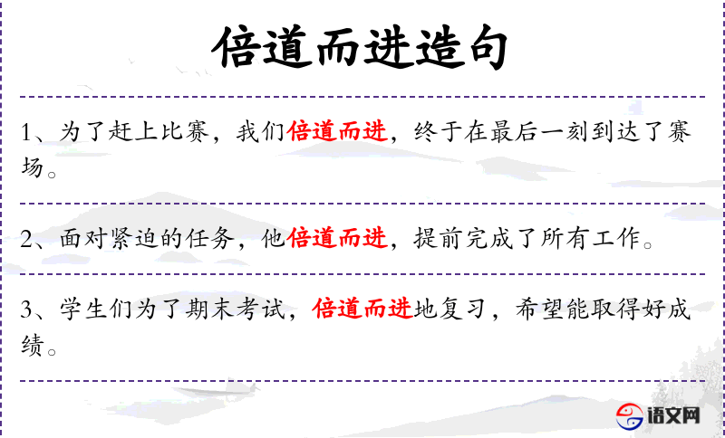 - “倍道而进”这个成语源自《左传》,意指加倍努力,体现了中华文化中对勤奋和努力的重视。