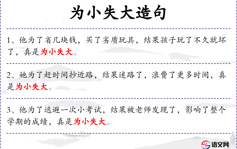 - 为小失大:成语,意为“因小失大”,指因小事而失去更大的利益。