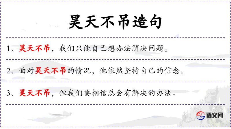 “昊天不吊”这个成语源自**传统文化,反映了古代人们对天命的看法。在现代语境中,它常用来形容不幸或困难的情况。