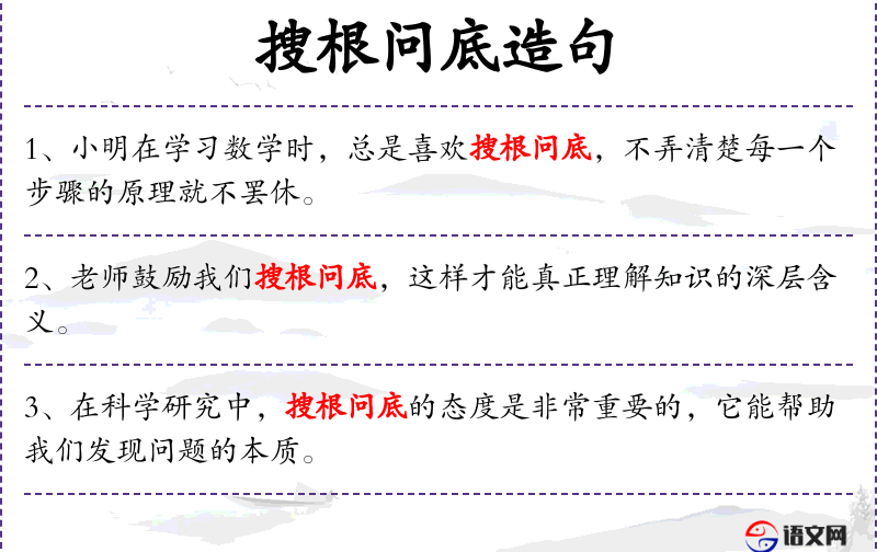 - 搜根问底:to get to the bottom of, to investigate thoroughly
