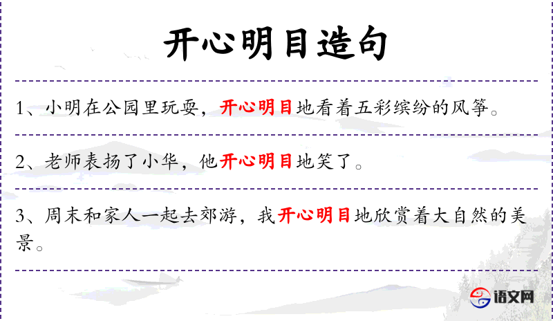 - 使用“开心明目地”强调了同学们的高兴是显而易见的,增强了表达效果。