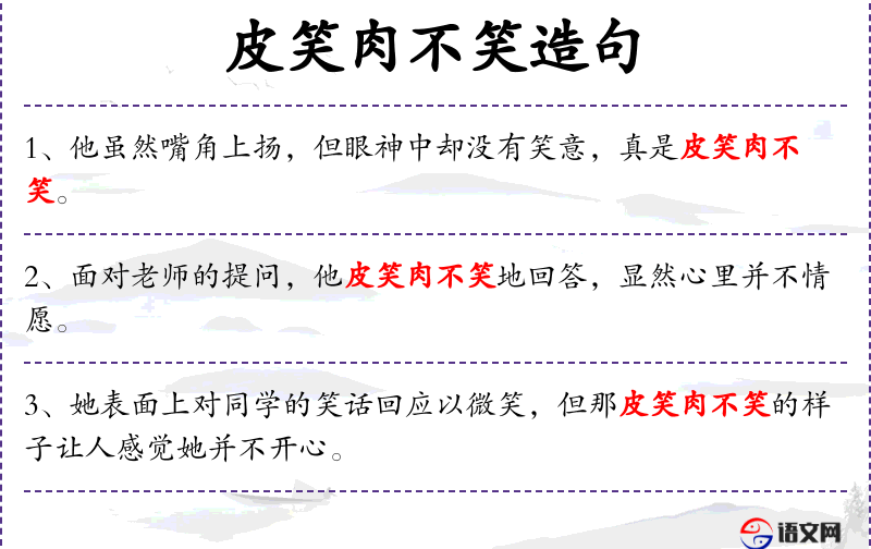 3. 【皮笑肉不笑】 - 极其不自然地装出一副笑脸。形容虚伪或心怀恶意的样子。