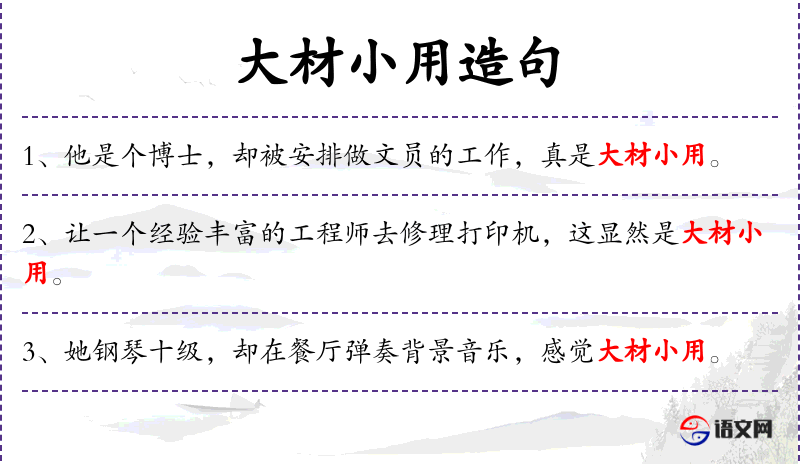 - 大材小用:这个成语在**文化中常用来形容人才或资源没有得到应有的重视和利用。