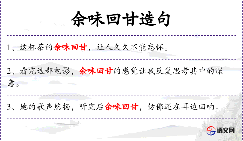 - 余味回甘:成语,形容事物结束后仍留有美好的回味。