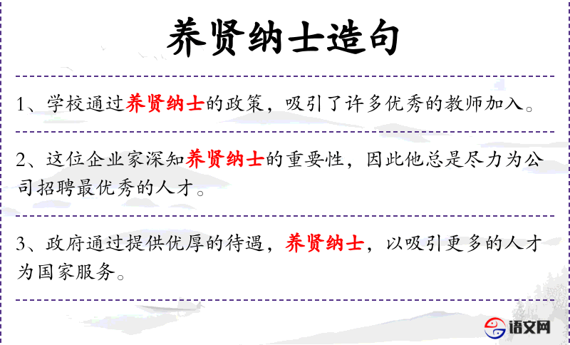 - 养贤纳士:这个成语源自**古代,强调了领导者应该重视人才的招募和培养。