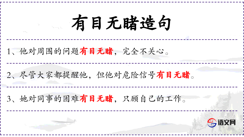 3. 【有目无睹】 - 犹言有眼无珠。用来责骂人瞎了眼,看不见某人或某事物的伟大或重要。