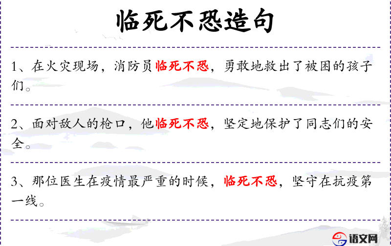 - 临死不恐:表示在面对死亡时没有恐惧。