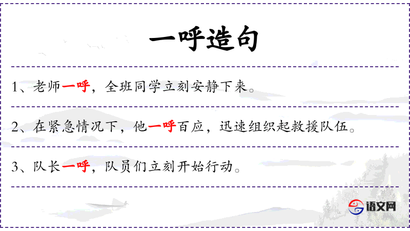 1. 【一呼】 一声呼唤; 一声怒吼; 一声号召。