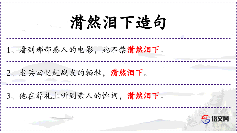 3. 【潸然泪下】 - 潸然:流泪的样子。形容眼泪流下来。