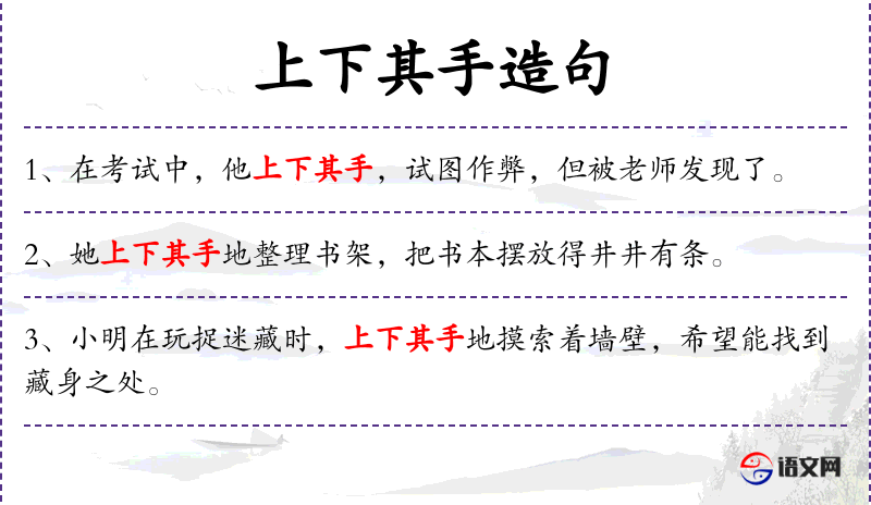 1. 【上下其手】 - 比喻玩弄手法,串通做弊。