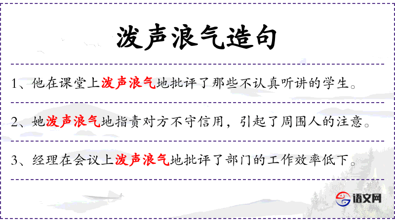 3. 【泼声浪气】 - 泼:泼辣;浪:放浪。泼辣的声调放浪的声势。形容撒泼的神态。