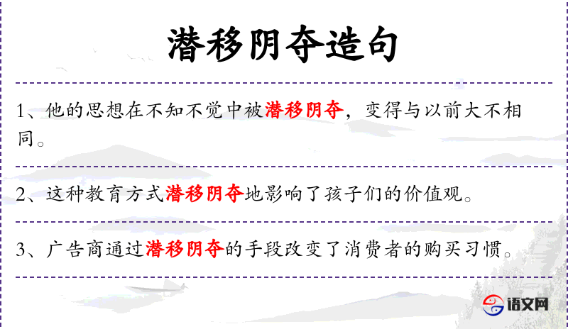 5. 【潜移阴夺】 夺:争取。指不露形迹地改变或取得。