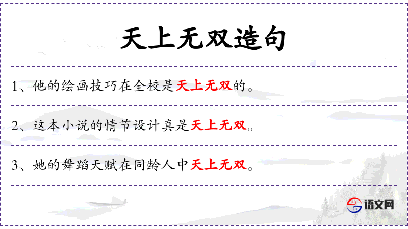 - 不同句式:“这幅画的色彩运用达到了天上无双的境界。”