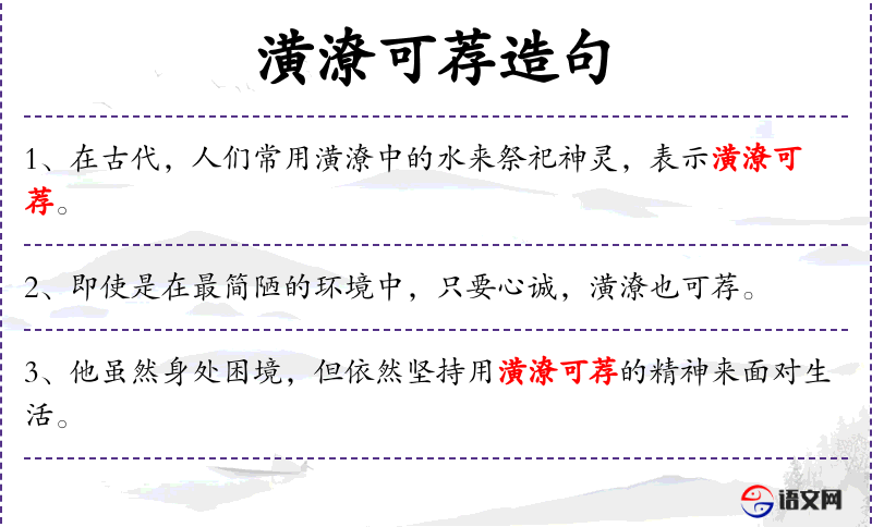 4. 【潢潦可荐】 荐:祭祀。指祭祀在于虔敬,而不在于祭品的厚薄。