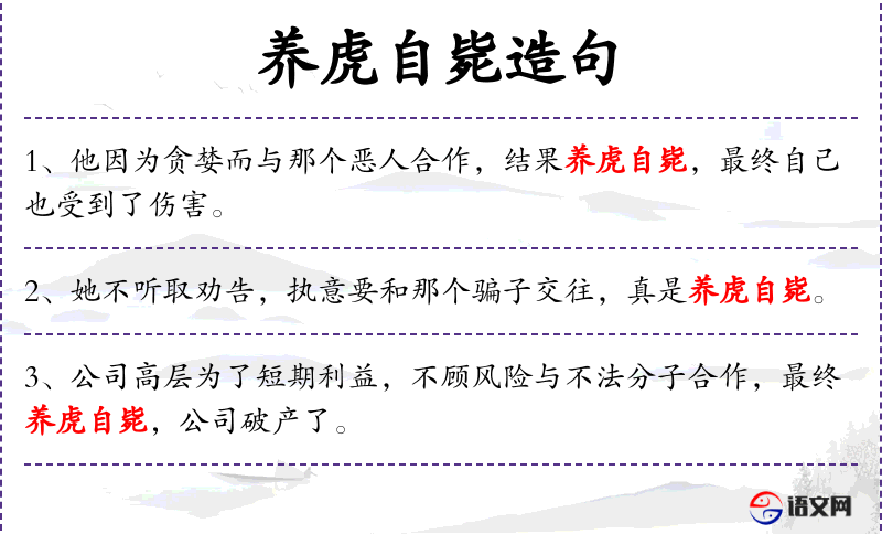 养虎自毙是一个成语,源自《左传·宣公十五年》,比喻自作自受,自食其果。这个成语在文化中常用来警示人们不要做损害自己的事情。