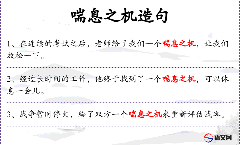 - 喘息之机:短暂的休息机会,名词短语。