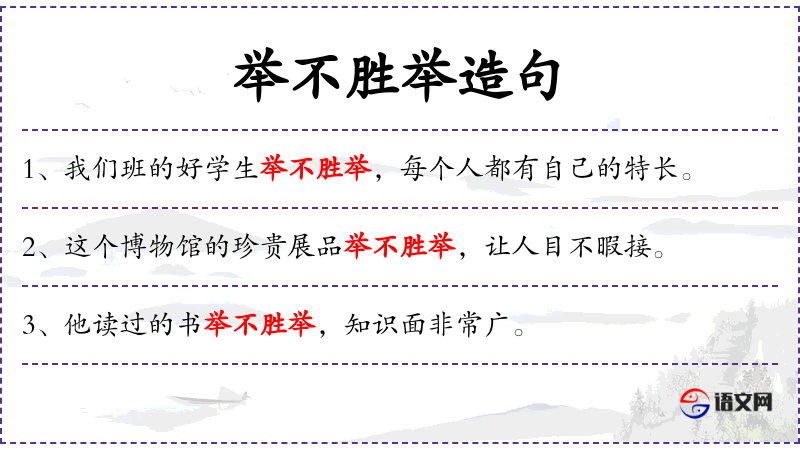 - 举不胜举:成语,形容数量非常多,无法一一列举。
