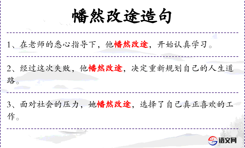 句子:“在老师的悉心指导下,他幡然改途,开始认真学*。”